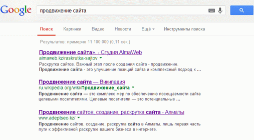 «Поисковым продвижением сайта» (SEO) называют работу по привлечению как можно большего числа покупателей на сайт благодаря поднятию позиций сайта в результате, выдаваемом поисковой системой при вводе запроса.