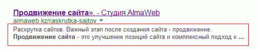 «Сниппет» (с англ. «фрагмент») — часть текста, который выдает поисковая машина вместе ссылкой. (краткое описание сайта).